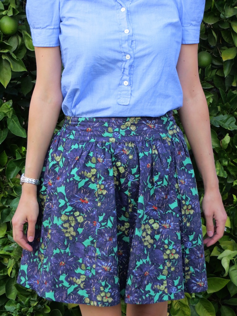 My two favorite colors are purple and green. So you can probably understand why I was so attracted to the J. Crew Elsie skirt in a pattern called "Nightfall." This particular skirt was part of J. Crew's 2011 fall collection. I love J. Crew prints, especially this one. It's not what you would typically expect from a floral print. I also love how J. Crew always has a story about how they discovered whatever print they are featuring. For example, you will often read a description in their catalog which claims something like this, "We found this print on a swatch of wallpaper discovered in the attic of a Chateau having an estate sale in the South of France..." Well, I just made that up, but if you have ever read the J. Crew catalog from cover to cover (like I have) you might know what I mean. My questions for J. Crew CEO Mickey Drexler is, "Are you just making this stuff up because it sounds good in your catalog or is this actually how you discover new prints and patterns?" Regardless, I am smitten with the patterns put out each season by J. Crew. If the "glamorous" stories behind them aren't real, then I don't want to know! This skirt was apparently inspired by an oil painting.