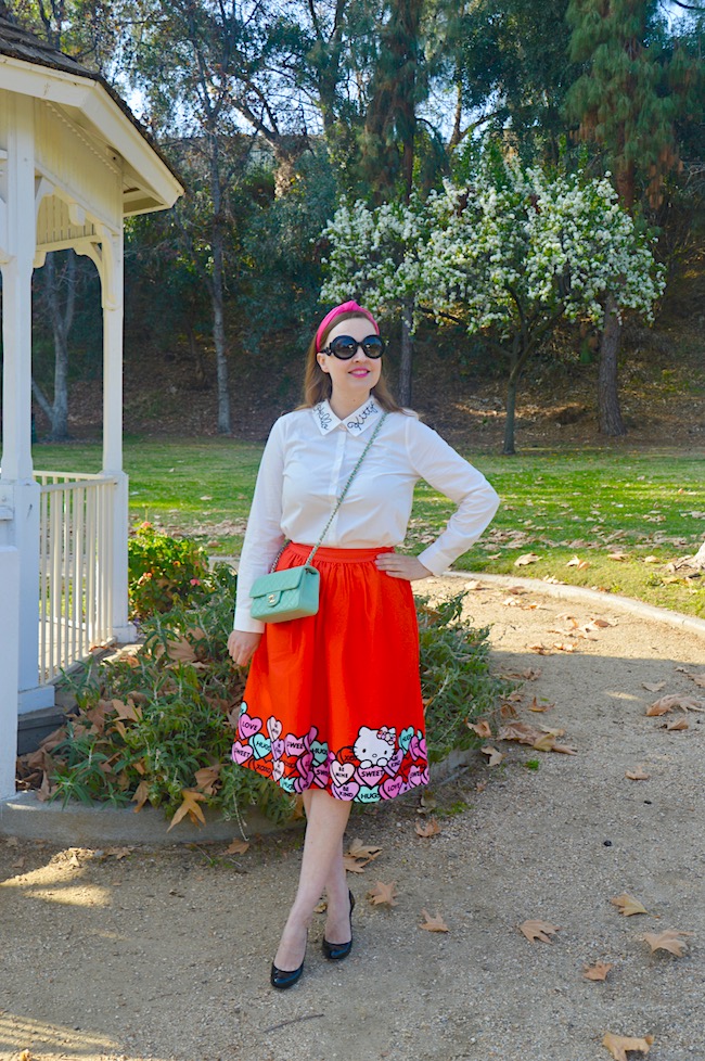 Oh my how adorable are you?! I love love that hello kitty skirt...super cute!! You are Valentine's perfection!